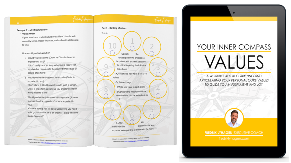 PART TWO of this book requires you to roll up your sleeves and do some work. It’s also the part that will give you enormous value, some say an epiphany, if you do it properly. If you do the exercises of this book as instructed you will by the last page have a one-pager of your core values, in hierarchal order and articulated so each of them resonate deeply with you as guiding principles on your onward journey in life.